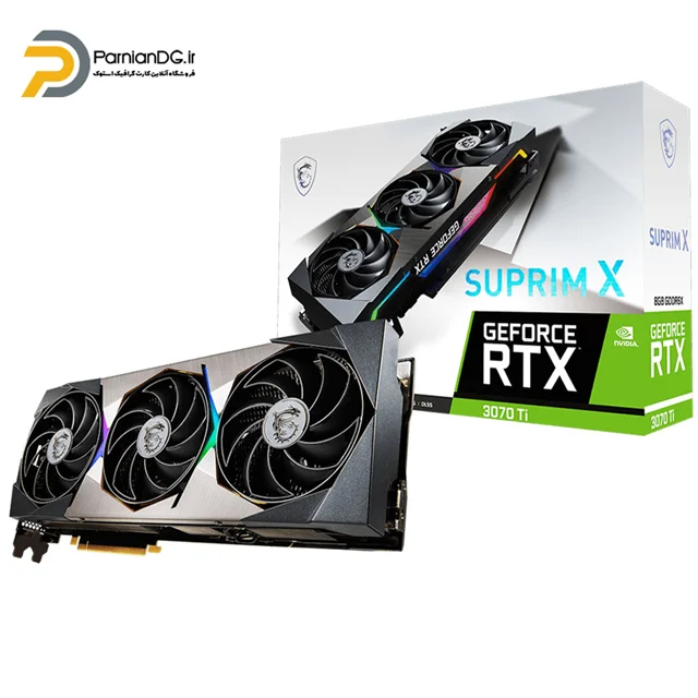 کارت گرافیک MSI GeForce RTX 3070 Ti SUPRIM X 8G با معماری Ampere و 8GB حافظه GDDR6X، عملکردی قدرتمند برای گیمینگ و رندرینگ حرفهای ارائه میدهد. این کارت با فرکانس بالا، سیستم خنککننده TRI FROZR 2S، و نورپردازی RGB تجربهای روان و جذاب را تضمین میکند. پشتیبانی از Ray Tracing و DLSS کیفیت تصویری بالا و واقعگرایانه را به ارمغان میآورد. طراحی شیک و مقاوم آن مناسب برای سیستمهای حرفهای است